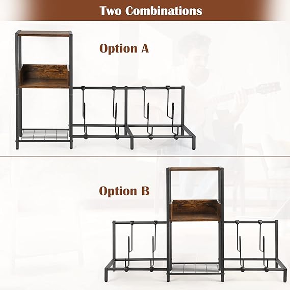 · With 3-tier Storage Shelf: The storage shelf stand can help you keep vinyl record player, vinyl records, albums, guitar tuner, guitar amp and guitar accessories. It is composed of high-quality metal and hard thick wood. Combining the 3-tier storage stand, it has two options to install the guitar stands. More convenience and enjoyment.