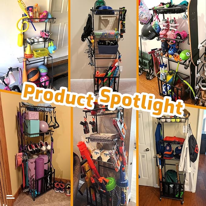 · 【Multipurpose Rolling Sports Organizer】 Use it as a ball storage rack in garage, a kids toy organizer in home, a sports gear display shelf in the sport store. It can help to tidy up and organize space, let you get rid of clutters at once.