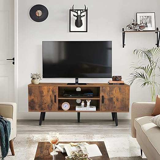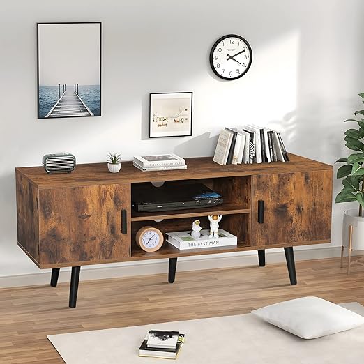 DX TV Stand for 55 Inch TV, TV Console with 2 Storage Cabinet and Shelves, TV Stands for Living Room/Bedroom, Rustic Brown
