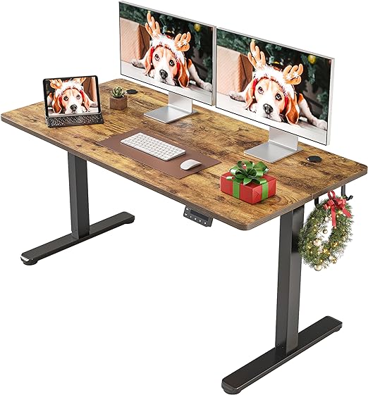 Height Adjustable Electric Standing Desk, 55 x 24 Inches Stand up Table, Sit Stand Home Office Desk with Splice Board, Black Frame/Rustic Brown Top