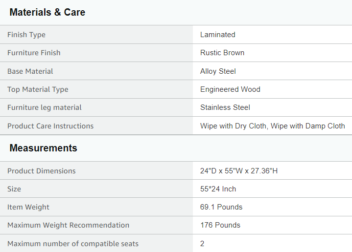 Product Dimensions | 24"D x 55"W x 27.36"H |