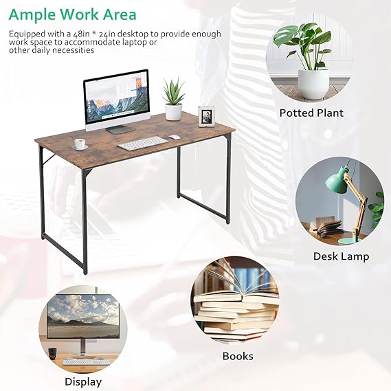 · Excellent Appearance:This tasteful, vintage-style computer desk unifies rigid metal with dark, wooden boards, resulting in a unique display of delicate charm; With simple and modern appearance,the desk matches well with various furniture style, updates your home decor; Meet your expectations in functionality and aesthetics! With the modern appeal and design, you simply cannot go wrong with this addition to your home or office decor.