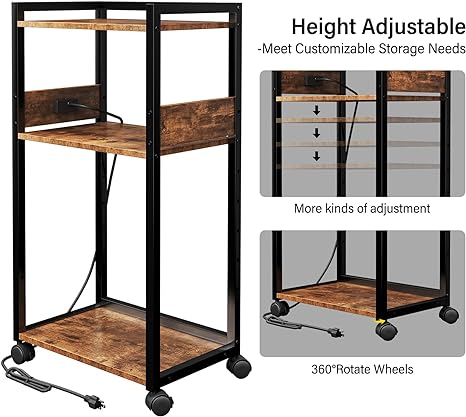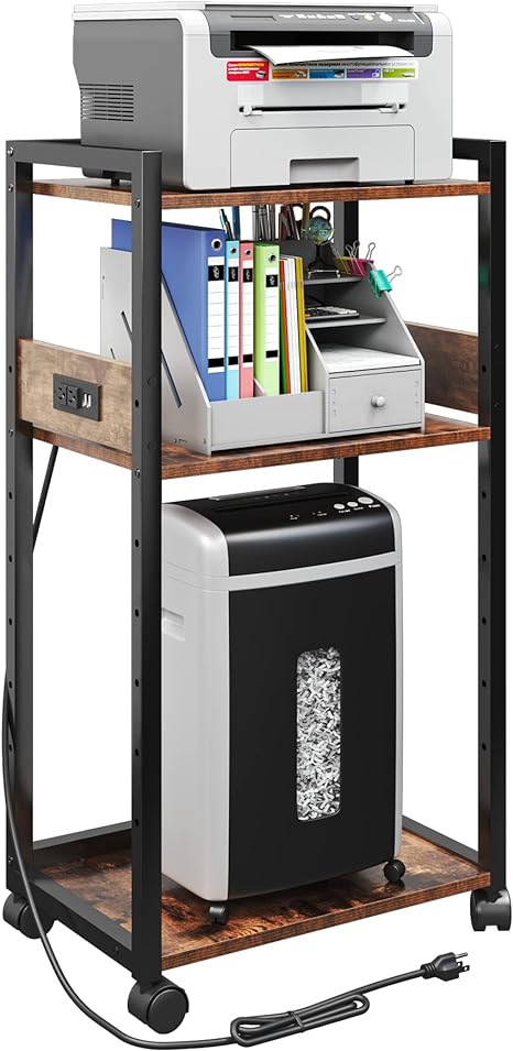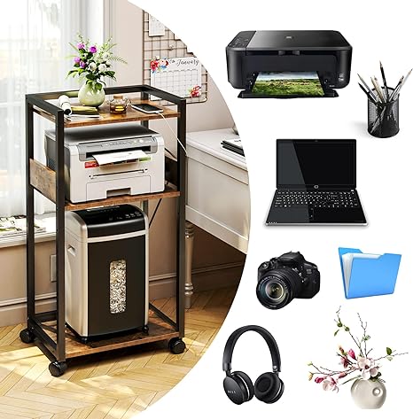 · Multifunctional Storage Shelves: It adopts classic retro fashion and matches with most decoration styles and color theme. In addition to being used as a printer table, our multifunctional stand shelf is also a side table, bedside table, kitchen shelf, dresser cosmetic shelf, entertainment rack etc. In summary, printer cart fits in any usage scenarios without limitation