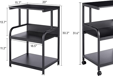 · 【Space Saver for Home Office】With compact size 20"L x 15.7"W x 30.1"/31.5"H and 3 tier design, this stand is a good solution for small spaces to keep printers, scanners and fax machines as well as your office supplies such as files, books, stationeries, printing papers and so on in one place, freeing up your work space and giving you a neat and tidy office.