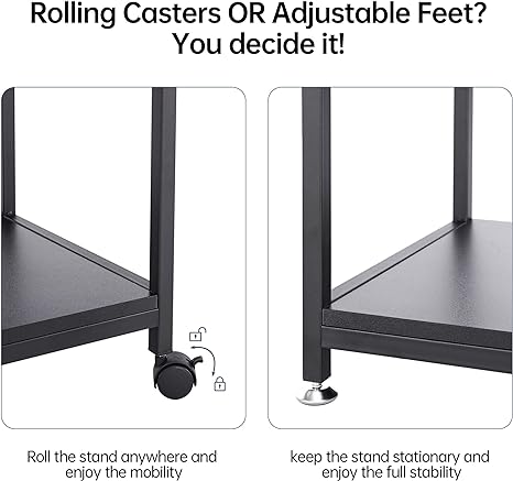 · 【Two Options】Coming with both adjustable feet and rolling casters, this piece gives you two options. You can either use the adjustable feet to keep the stand stationary and enjoy the full stability or mount the casters to move around flexibly and enjoy the mobility. 2 of the 4 wheels are lockable to keep the cart in position.
