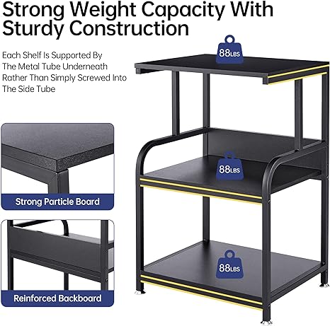 · 【Sturdy and Heavy Duty】With each of the strong particle board braced by the robust steel tube frame underneath rather than simply screwed into the side tube, this printer stand has a solid construction and can feasibly hold up to 88 lb on each tier. Made of CARB P2 class manufactured wood, it is environment-friendly and 100% safe for your health.