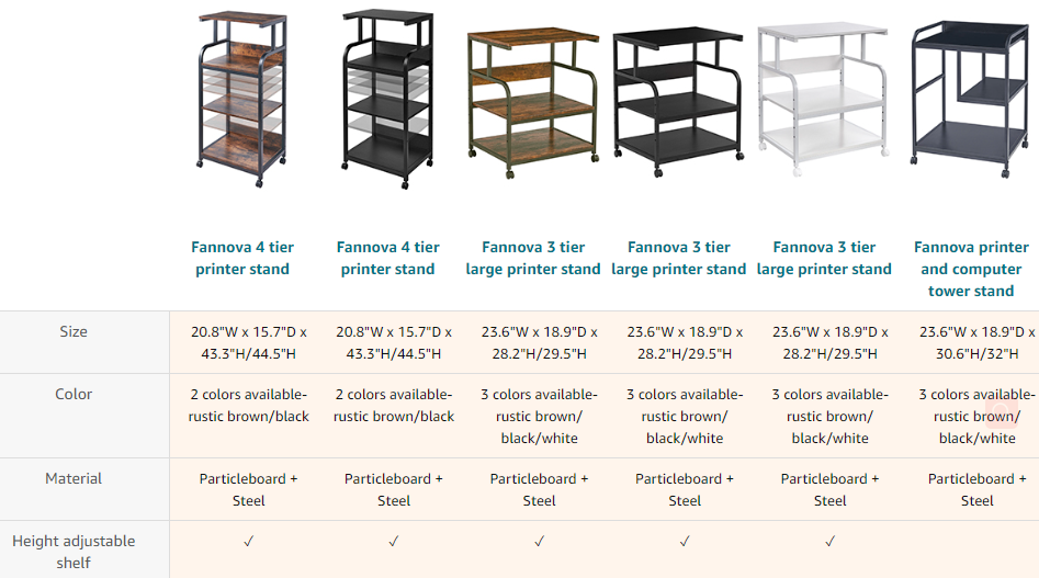 · 【Multifunctional for More Use】It's definitely more than just a printer table for your office organization. It's a kitchen cart to put microwaves, pots and pans; a storage shelf to keep your cricut, heat press machine, plants and flowers; a bookshelf to stack a multitude of books; or a music station where you can set your DVD players, speakers, record players and vinyl collection.