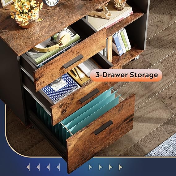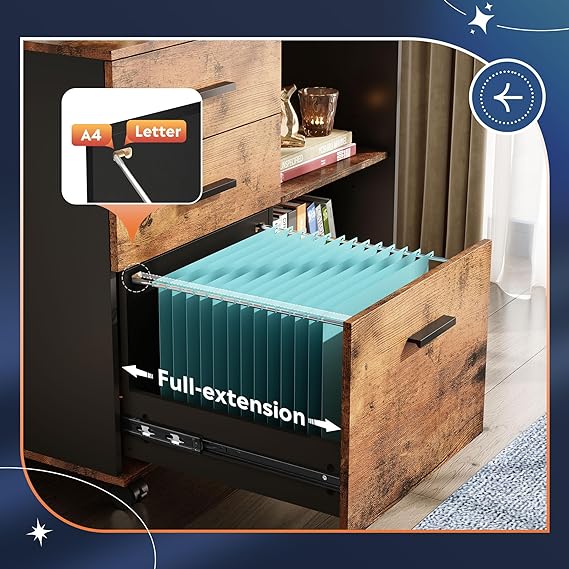 · 3 DRAWERS & LARGE OPEN STORAGE: 2 top small drawers provide plenty of storage space for small items. Bottom drawer keeps hanging letter, A4 size files organized and extends fully for easy access.