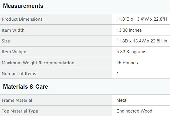 · Space-Saving & Capacity - 13.4" W x 11.8" D x 22.8" H , and 3-tier design saves more space. With a top load of 70 pounds, a middle and bottom load of 45 pounds. It can be used as a drink table, coffee table, snack tables, sofa side table, side table, entrance table, hallway table or bedside tables in bedrooms, living room.