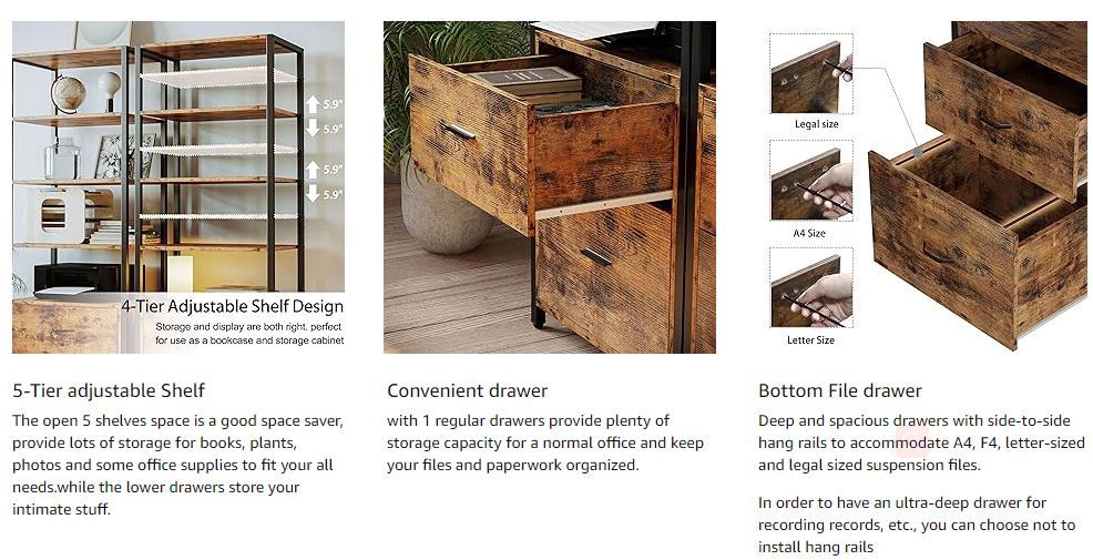 · Durable and Sturdy - A combination of well-made iron frame and P2 MDF board gives the filing cabinet great durability, with its thick black metal legs and under-shelf support rods guaranteeing its stability