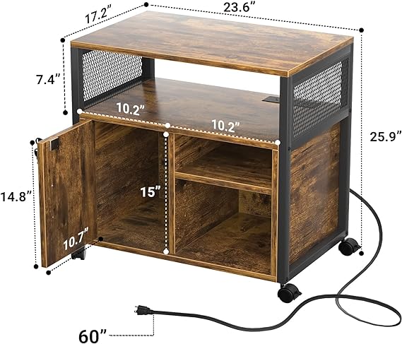 · ���【Movable and Easy to Assemble】 This rolling printer cabinet come with 4 locking casters to move smoothly from room to room and adjust in position freely, which can securely lock in place to prevent any unwanted movement and add stability. It also can be fixed beside or under desk. All accessories and detailed instruction included. It is fairly easy to put together alone without any help.
