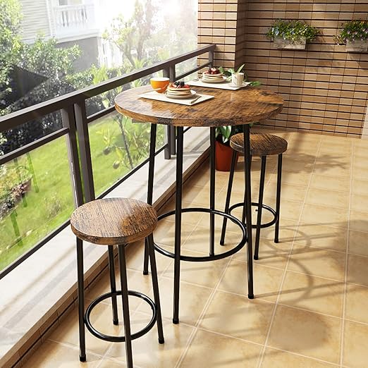 · Compact Design - 3 Piece Pub Dining Set: Compact design allows you to put it anywhere, help to create your own pub or bistro area with an attractive classic and stylish look. With minimalist and chic style, the kitchen table and chairs for 2 can blend perfectly into any décor. This 3 piece pub dining room set is a perfect home essential. Making use of an empty corner or sitting area in your home!